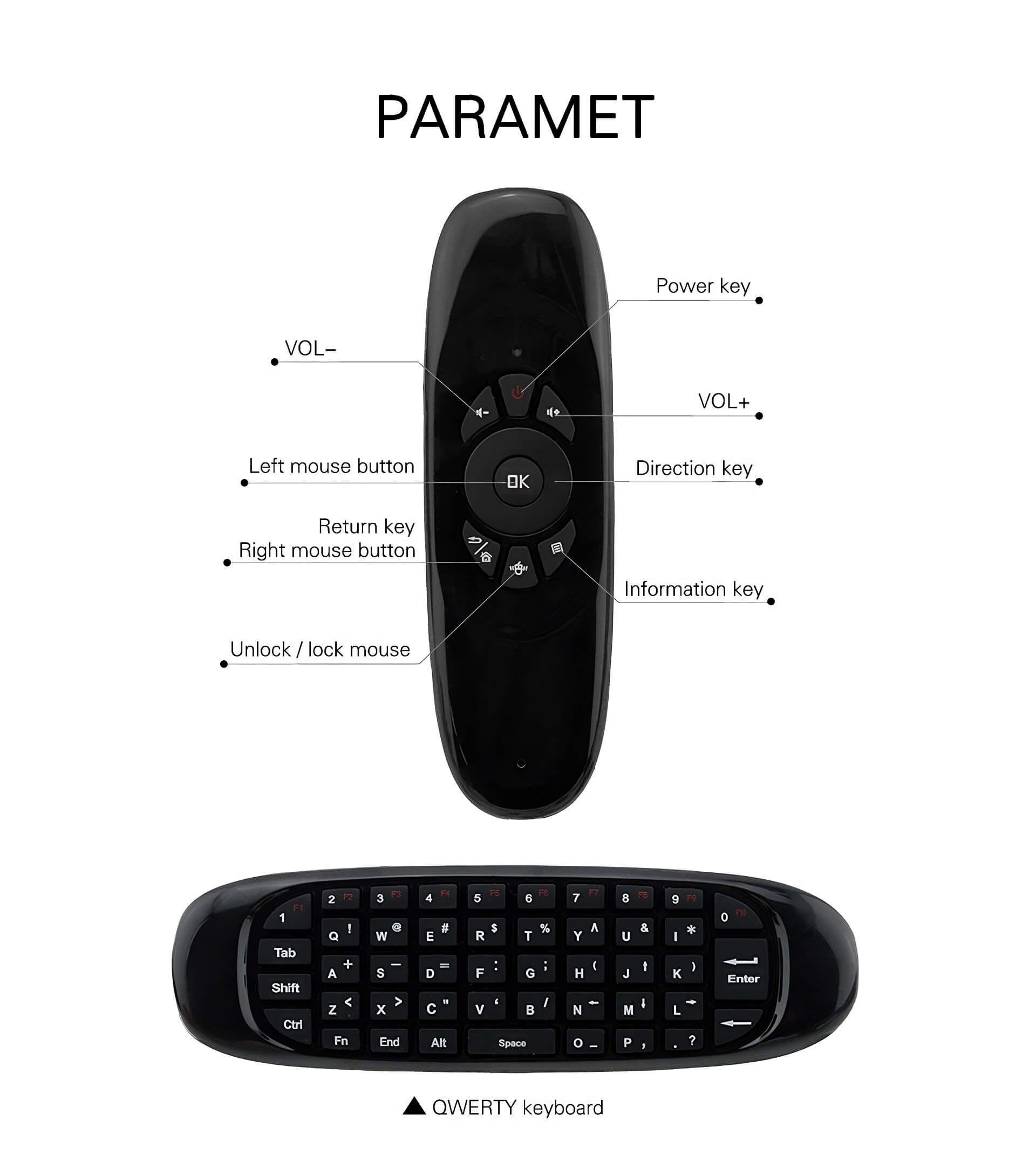 3 in 1: air mouse + wireless keyboard + remote control, ingenious and handy.